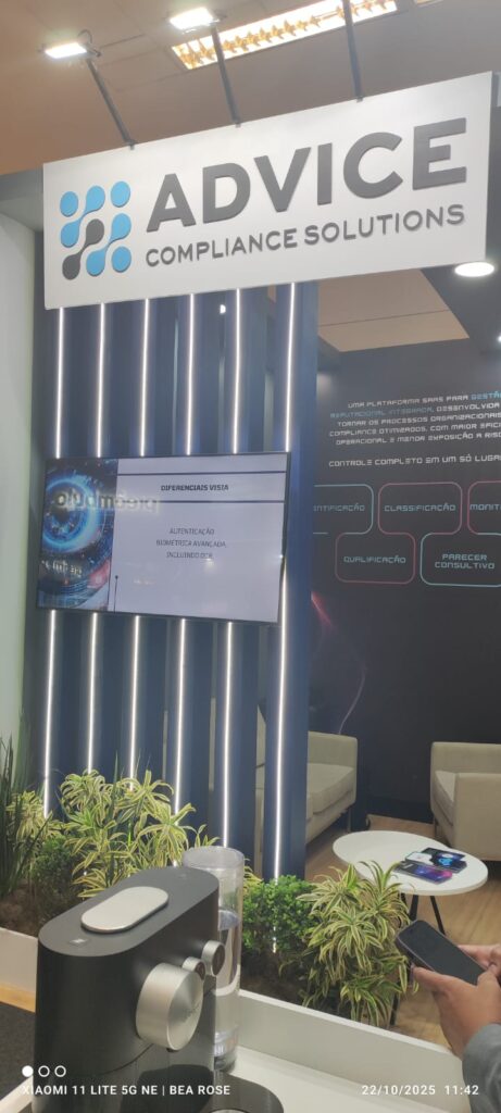 A Advice foi expositora oficial do evento e esteve presente na área 574, onde apresentou o Visia Compliance, a mais recente inovação da Advice Compliance. Trata-se de um sistema completo para a Gestão Reputacional Integrada de contrapartes permitindo uma avaliação contínua de riscos relacionados a fornecedores, parceiros e clientes, com foco em transparência, integridade e tomada de decisão estratégica.